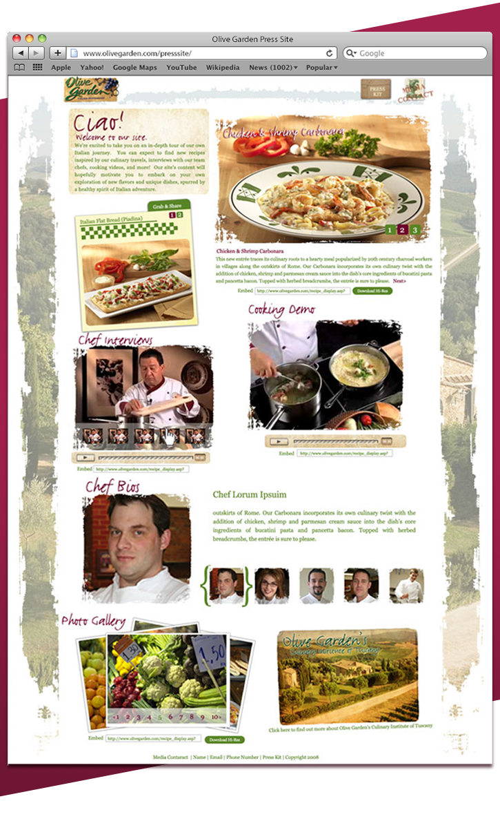 This a press site that I did visual and interaction design for The Olive Garden while working at VM Foundry.